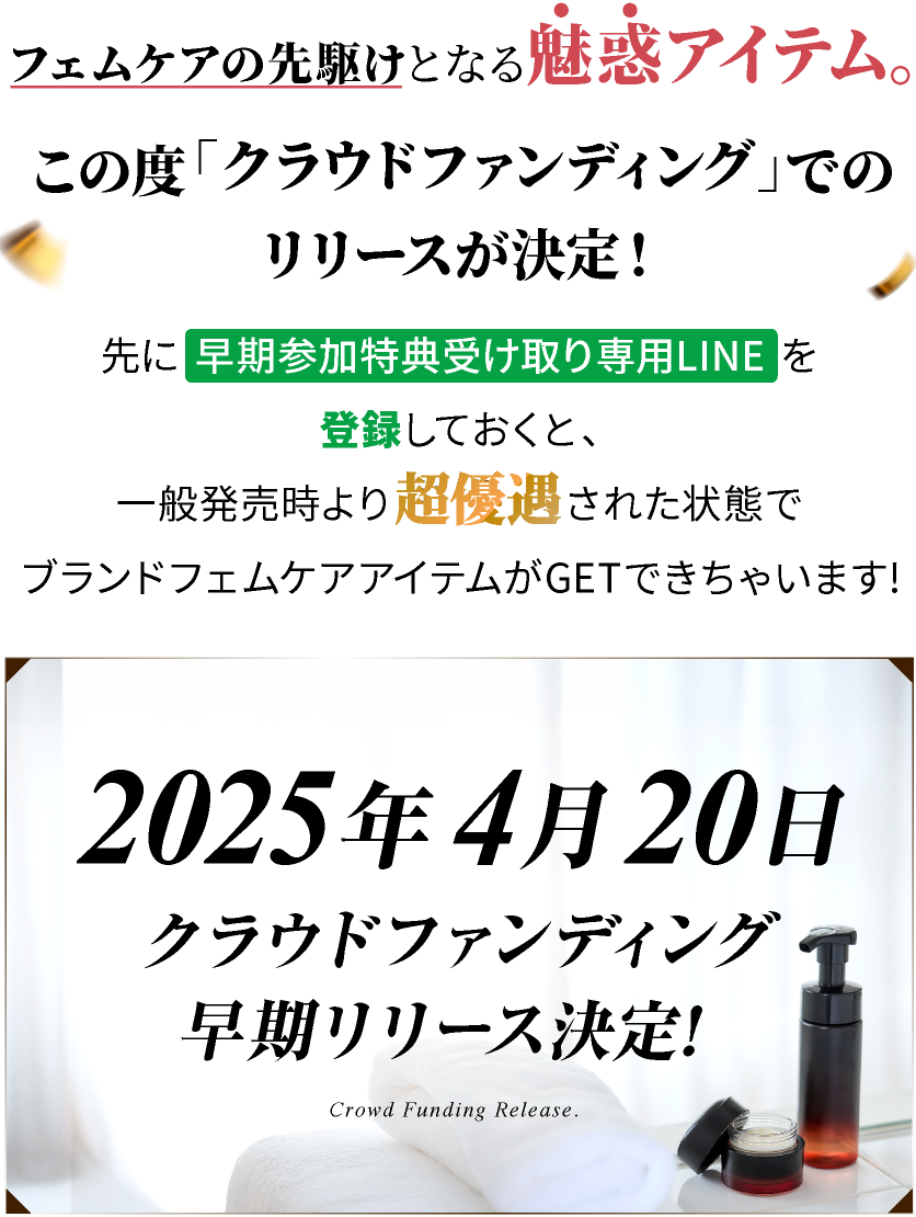 ハイスタンダードフェムケアブランドのクラファンリリースは、「2025年4月20日」となります。