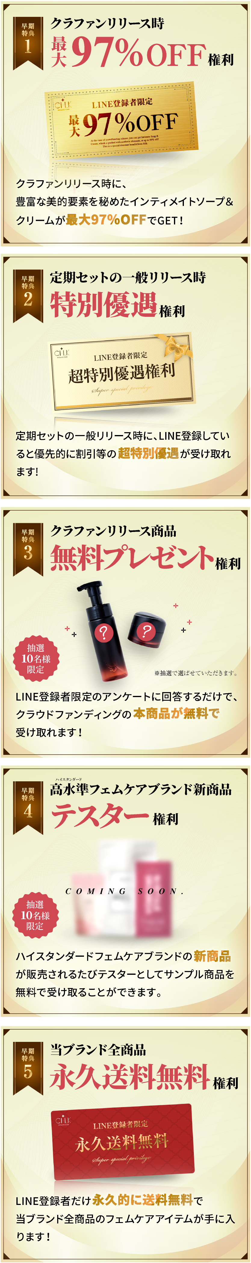 クラファンリリース時のフェムケアアイテムの情報は、公式LINEからのみ受け取り可能です。